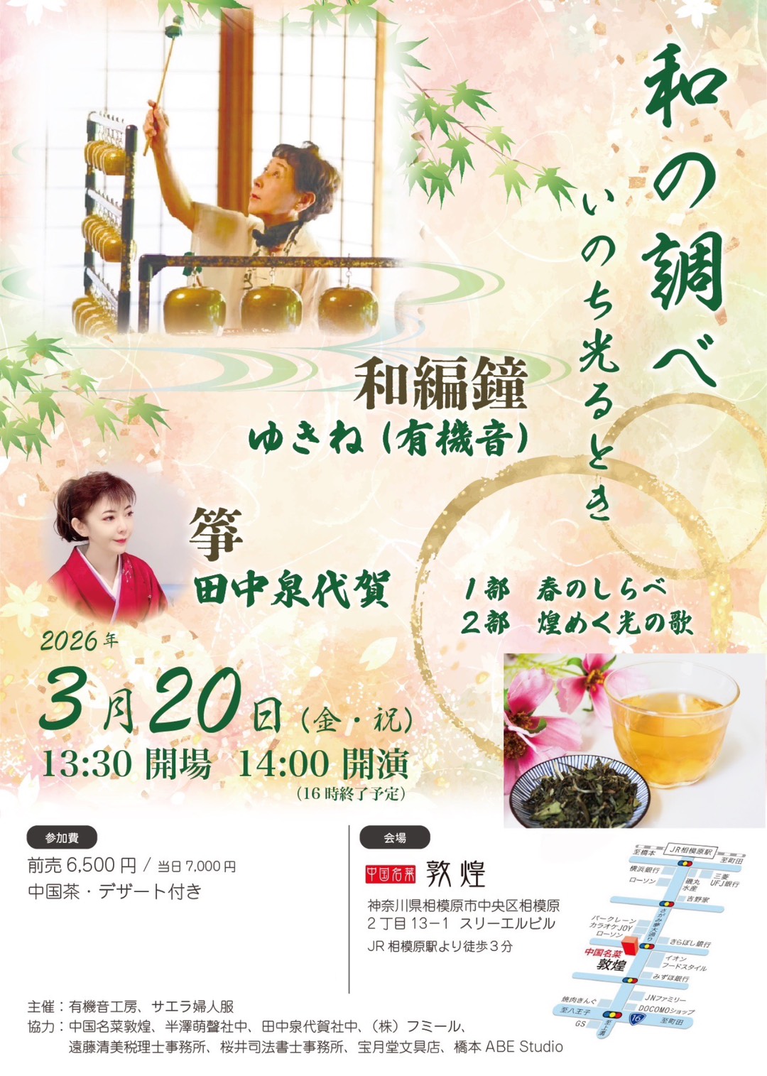茅ヶ崎市堤のおこと三味線のお教室『田中泉代賀』 2019.04.19 caret-down caret-up caret-left caret-right お教室お琴やお三味線を弾いてみませんか?お気軽にお問い合わせください。 出張演奏おことのしらべで雅なご宴会・パーティを演出しませんか? お琴の製作過程お琴の素材やお琴が一本の木をくりぬいて作られていることをご存知ですか? プロフィール国立劇場などの演奏会を中心に活動し、日本伝統文化の継承に努めております。 山田流とは18世紀後半、江戸で山田検校が創始。江戸の代表的音曲の一つとなった。 アクセスマップ神奈川県茅ヶ崎市堤にあります「おこと教室」へのアクセスマップです。 お琴、三味線の体験は無料です。お問い合わせ下さい。 3月20日(金・祝)のLIVE‼ 和の調べ ~いのち光るとき~ 敦煌 JR横浜線相模原駅徒歩 🕒 開場 13:30/ 開演 14:00 ご興味いただける方はDMでお問い合わせくださいませ! 皆さまのお越しを心よりお待ちしております😊